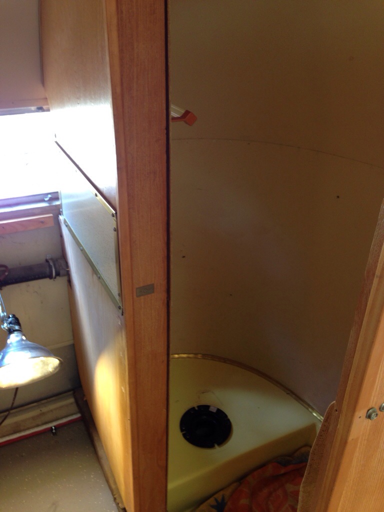 Bathroom in May 19, 2014thinktankair I got the black tank in and shower wood support. Then I put in the fiberglass Then put in the walls. I still need to attach with slotted old style screws. I also prepped the cabinet areas. Share this: Click to share on X (Opens in new window) X Click to share on Facebook (Opens in new window) Facebook Like Loading...
