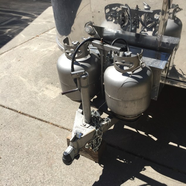 I was getting low on propane and I found out my tanks had the old connection on them (of course everything is old on the trailer). With the suggestion of Rachel Harp from Harps RV in Lincoln, CA , I got small tanks and shined them. I’m good for 12 years!