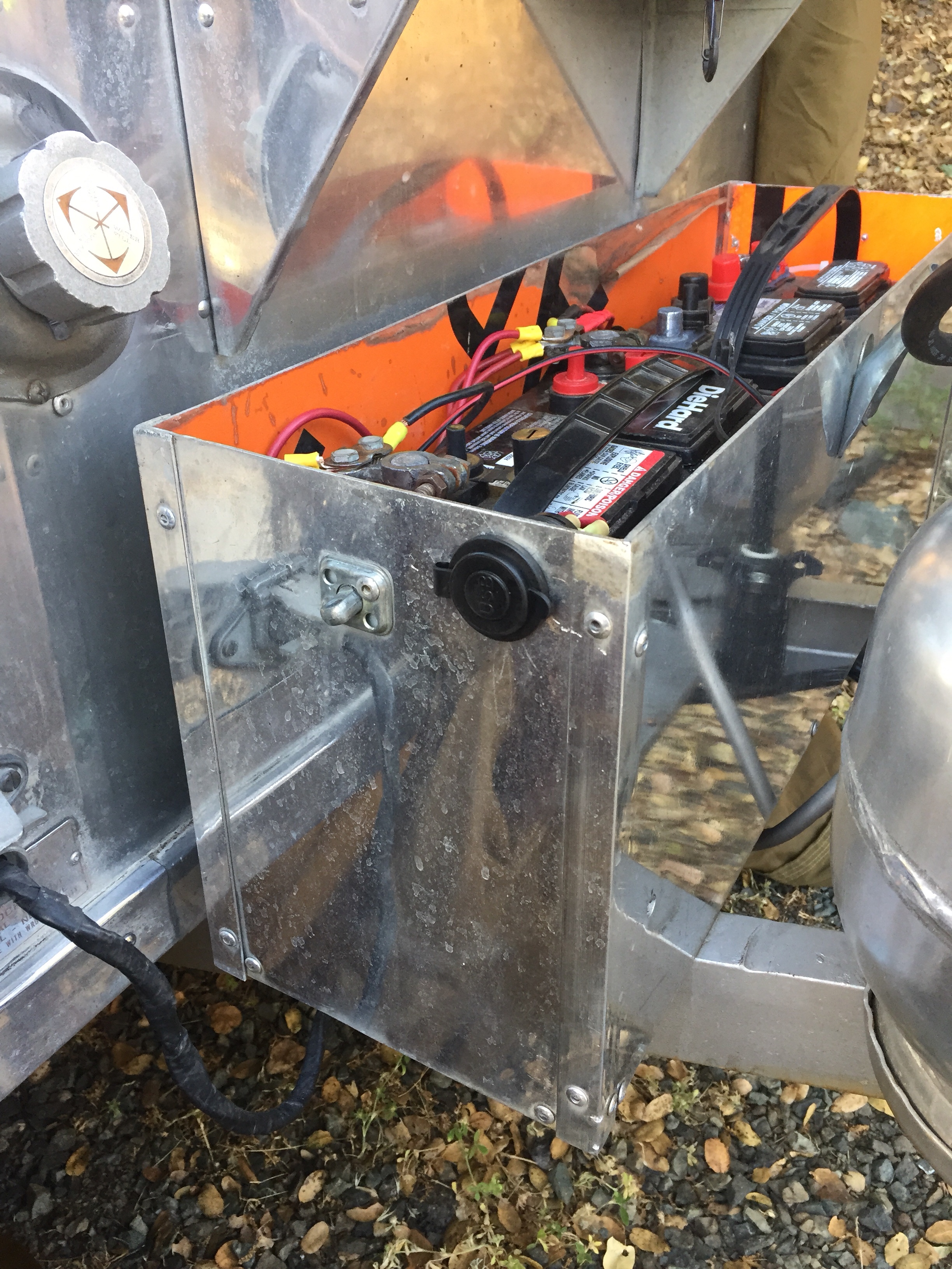 I camp many places that don’t have electricity. I usually charge my phone, watch, and iPad through my tow vehicle. The last time I camped I drained my car battery. In search of another solution, Rachel at harps recommended using a marine charger on my battery box. This is what I did.