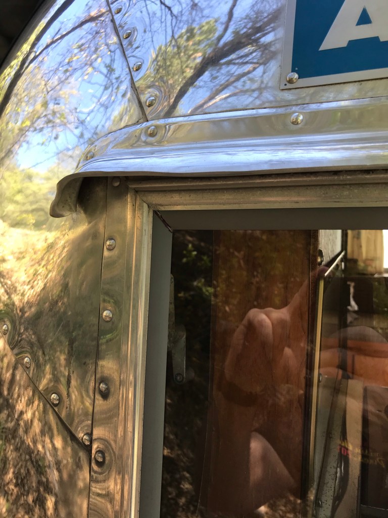 People always ask how I keep the trailer shiny – you have to shine it! My first camp out is in three weeks, so it was time to pull down the trailer and do the preseason shine. I use Metal Gloss polish with my Cyclo polisher. I saw it at a car show and it works well. You can also use Nuvite S.