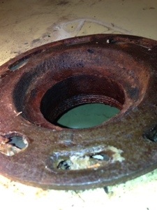 I am having some frustration with a toilet flange. I have discovered the floor under the black tank is rotten. Unfortunately, I need to remove the toilet to get to the flange; remove the flange to get to the wet bath fiberglass; remove the fiberglass to get to the black tank; and remove the black tank to get to the rotten floor. The flange is meant to spin off but it is made out of cast iron and is rusted solid. It will be out by this weekend.