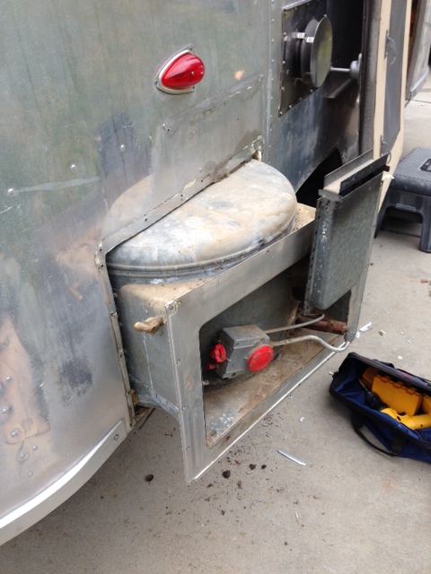 The water heater is out! The last time it was out of the Airstream was when it was installed over 50 years ago. I am still deciding if I will put it back in as the previous owner didn’t use it and said it leaked. I seamed to hold water, but it is old! I will need to continue working on it. Most people recommend replacing the heater at this point.